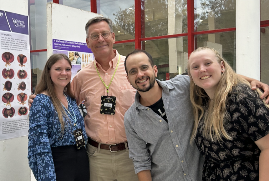 2025 Our new project logo, designed by Julie Cadigan (WCU) DNA extraction weekend marathon and imaging cool fireflies Firefly Research Group (Stanger-Hall and McHugh labs), Fall 2025 Margot's paper on how pigments can impact the light color of P. pyralis came out in Ecology and Evolution! Check it out! Stay tuned for her work on different species! Popecki, M. S., S. A. Archer-Hartmann, P. Azadi, R. L. Rogers, J. P. Wares, and K. F. Stanger-Hall. 2025. “ The Role of Pigments in Light Color Variation of the Firefly Photinus pyralis.” Ecology and Evolution 15, no. 8: e71927. https://doi.org/10.1002/ece3.71927. Welcome to Athens (and excellent Pho)! Welcoming our new graduate students Miriam Aquino Romero and Andrea Sibu Cubilo (Stanger-Hall and McHugh Labs)! Our labs (UGA & WCU) had a strong showing with 2 talks, a panel discussion, and 4 posters at the 2025 International Firefly Symposium in Tlaxcala, Mexico (July 28-Aug 1st). Yelena's paper on firefly antennal sensilla diversity was just published in PLOS One! Check it out and enjoy! Fireflies are amazing. And yes, morphology can tell you cool stuff about their behavior! Pacheco, Y., Mann, E., Da Silveira, L.F., Bybee, S.M., Branham, M.A., McHugh, J.V., Stanger-Hall, K.F. (2025). Antennal sensilla diversity in diurnal and nocturnal fireflies (Coleoptera, Lampyridae). PLOS One 20(6), e0323722. https://doi.org/10.1371/journal.pone.0323722 UGA Firefly Research Group, Spring 2025 (Stanger-Hall and McHugh labs) Judson representing the lab at the 2025 UGA CURO Research symposium on April 7, 2025. He presented his research on ambient light spectra. Congratulations Judson for being awarded a CURO Research stipend for Spring 2025. 2024 Firefly Research Group UGA and WCU, Fall 2024 (not present: Judson Stricklin). UGA DNA extraction (tiny fireflies) and PCR workshop for all project students, Oct 17-28. First combined lab meeting for our new NSF funded South American firefly project: Members of the Stanger-Hall and Mc Hugh Labs from UGA and of the Silveira Lab from Western Carolina University (September 2024) Fall 2024: Welcome to our two new PhD students, Martha Drake and Kimberly Garcia (co-advised with Joe McHugh) Graduation Day! (May 2024) Congratulations, Dr. Popecki! Margot defended her PhD (April 2024). She is currently working on publishing her two manuscripts on the role of pigments in the light organs and eyes of different species of fireflies. Stay tuned! She is currently a postdoc in the Lab of Rebekah Rogers at UNC Charlotte, studying gene duplication fireflies. Congratulations to Margot who received the 2024 Graduate School Excellence in Teaching Award! 2023 Graduation Day! (December 2023) Congratulations, Dr. Pacheco! Yelena defended her PhD (September 2023) and will move to Washington, DC and work as a postdoc in the lab of Chris Owens at the Smithsonian on gene duplication in aphids. Congratulations, Yelena! Yelena is working on two manuscripts that will be published soon, so stay tuned for updates. The lab was awarded a NSF DEB ARTS grant, Deploying integrative systematics to untangle Lucidota, the Gordian knot of Neotropical firefly taxonomy, in collaboration with Luiz Silveira at Western Carolina University and Joe McHugh at the University of Georgia (and many collaborators in Brazil and Colombia). As part of this grant we will be training four graduate students in integrative systematics and taxonomy. 2022 Powell, G. S., Saxton, N. A., Pacheco, Y. M., Stanger-Hall, K. F., Martin, G. J., Kusy, D., Silveira, L. F., Branham, M. A. & Bybee, S. M. (2022). Beetle bioluminescence outshines extant aerial predators. Proceedings of the Royal Society B, 289 (1979), 20220821. (July 2022) Kristin N. Dunn; Steven R. Davis; Hollister W. Herhold; Kathrin F. Stanger-Hall; Seth M. Bybee; Marc A. Branham (2022). Morphological changes in the tracheal system associated with light organs of the firefly Photinus pyralis (Coleoptera: Lampyridae) across life stages. PLOS One, 17(6), e0268112. https://doi.org/10.1371/journal.pone.0268112 . (June 2022) International Firefly Symposium 2022: So much fun to see old friends and meet new collaborators! Our lab had a strong showing with 4 talks at the International Firefly Symposium in Porto, Portugal (June 15-18, 2022). Congratulations to Margot for her honorable mention in the student talk competition! Portugal sightseeing trip Congratulations, Kelly! Kelly, an honorary member in our lab, just defended her thesis on her Atlanta Firefly Project (April 2022). 2021 We published a PLOS ONE Favorite! PLOS ONE celebrates its 15 year anniversary. Over this period the journal has published over a quarter of a million articles. Staff editors from different subject areas choose their favorites and one of these 18 articles is an article by Kathrin Stanger-Hall in the subject area Public Health and Medicine! How cool is that!?! Congratulations Yelena! Yelena passed her oral exam and is now an official PhD candidate! (October 2021). Congratulations Yelena! Yelena is the recipient of a 2021 Coleopterists Society’s Graduate Student Research Enhancement Award! (June 2021) Congratulations to Nicole Steel, Emma Ellis and Mary Roach for being awarded a Spring 2021 CURO Research Assistantship. For their research projects Nicole will work on Firefly gene evolution and Mary and Emma will work on a Student sexual health behavior and knowledge needs assessment for UGA. 2020 Luiz's paper on firefly diversity in one of the "hottest firefly hotspots" in Brazil just came out. Silveira, L.F., Khattar, G., Vaz, S., Wilson, V.A., Souto, P.M., Mermudes, J.R., Stanger-Hall, K.F., Macedo, M.V. and Monteiro, R.F., 2020. Natural history of the fireflies of the Serra dos Órgãos mountain range (Brazil: Rio de Janeiro)–one of the ‘hottest’ firefly spots on Earth, with a key to genera (Coleoptera: Lampyridae). Journal of Natural History, 54(5-6), pp.275-308. Congratulations Margot! Margot was recognized with the Mary Case Award for Ex